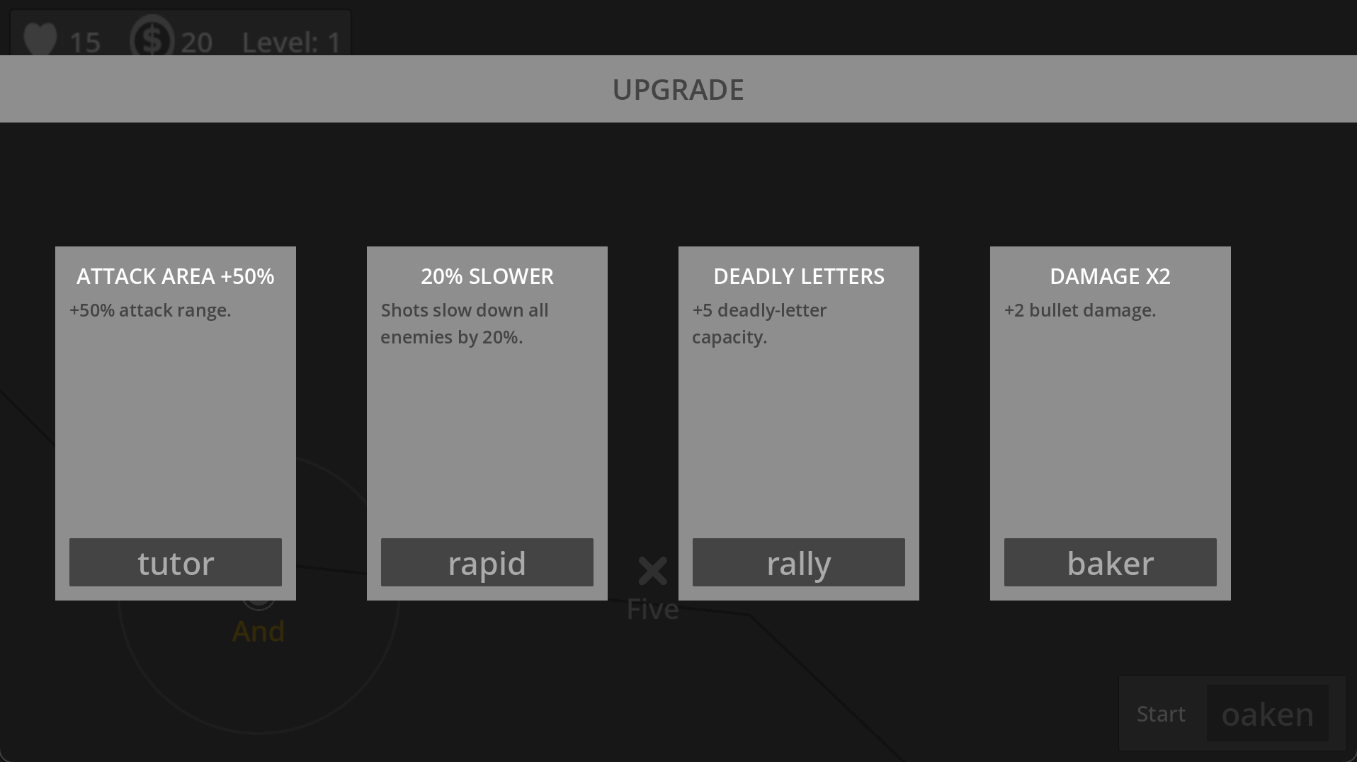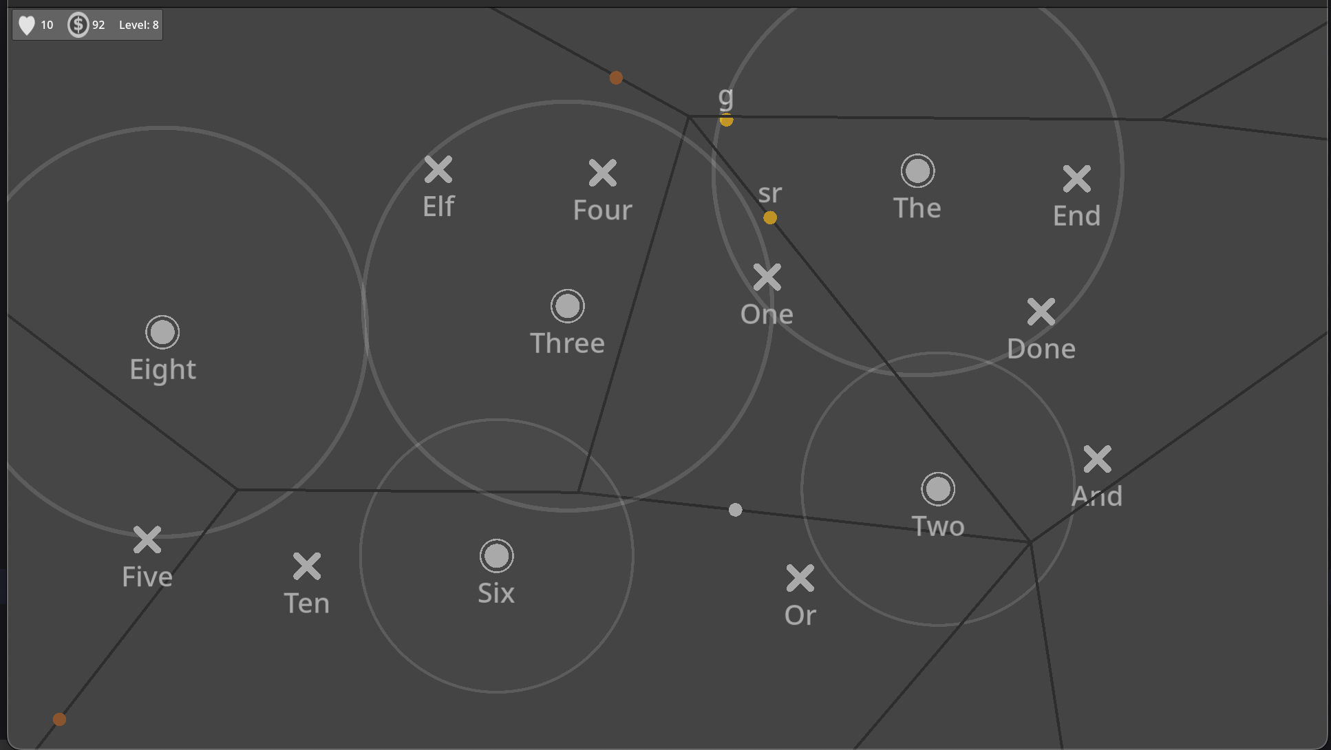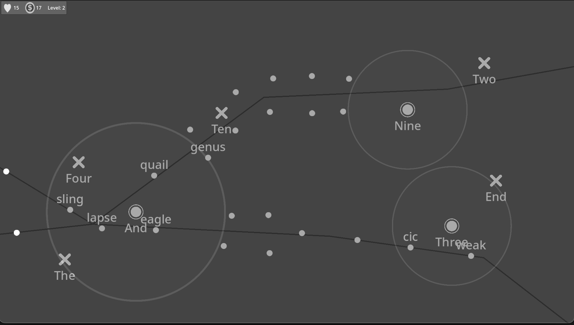 A typing-based tower defense. Type words to shoot enemies. Early prototype — after placing towers, type the word at the bottom to begin.